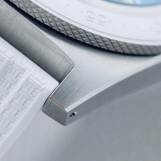 As always, we can dissect the aesthetics of a watch by looking at the case and dial separately. The former is designed and manufactured and finished well for this type of watch at this price point and more, featuring a pretty thick mid-case which gently curves down towards the lugs. The mid-case appears tall indeed because its slab-sided profile is made more pronounced by a fine horizontal brushing and thin upper polished chamfers and the absence of them at its bottom. Moreover, the case-back is deep and appears to be sur-elevating the mid-case, which doesn’t impede on the wearing comfort, but which makes the 11.5mm measurement come across as being deceptive. That and the straight cut-outs between the lugs = 1960s/70s skin-diver inspired case which I’m particularly found of. A neat detail however is how, seen from above, the lugs narrow down at their extremity, and seen from the side, they are cut straight at a sharp angle.