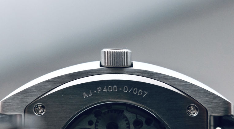 The most important spec of this watch is the one I’ve already touched upon in the introduction: the fact that the entire dial is made out of the hood of a vintage Lamborghini Miura. Dials are cut out from the hood and made into circular elements, and since they are made out of an old piece of metal, you can easily imagine that each dial looks different. (A bit like dials made out of meteorite all showcase different and unique patterns.) That’s cool, even though I’m not a car person, because upon close inspection of the dial you can see dozens of hairline scratches which testify to the metal’s history and age. Although rocks from outer space do fascinate me, there is a certain romanticism looking at a piece of metal which lived many years and was driven in many places. See? The AJ-P400 might very well convert me into a vintage car person, it’s working!