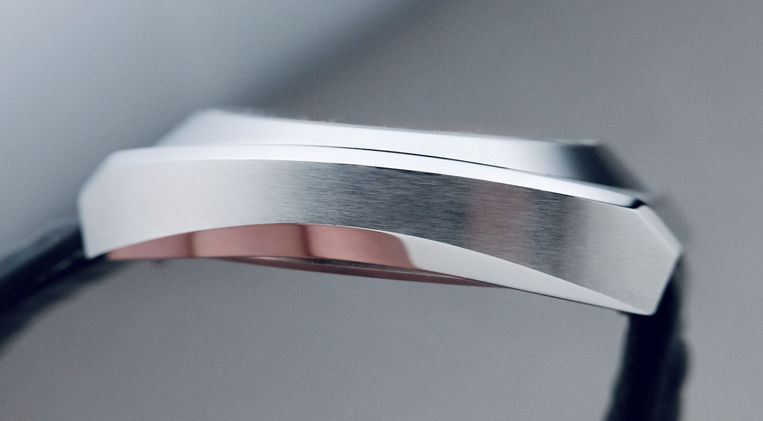 Interestingly enough, the way the minute ring was designed doesn’t impact reading the time. Instead, it enhances it by offering us a different way to look at how to divide up an hour. The larger hash-mark between two full hours indicates half-points (30 minutes) while each smaller hash-mark 15 minutes. This is actually reminiscent of single-hand watches that have a similar way of showing blocks of time. (Perhaps the designer who created the first single-hand watch was a huge automobile fan.) Moreover, and as mentioned earlier, the power-reserve indicator was cleverly integrated within the dial, both functionality and visually. And the framed date aperture, located at the three, which sits lower than usual due to the thickness of the dial, is rather discreet. An effect the brand didn’t perhpas intend to achieve but which works well nevertheless.