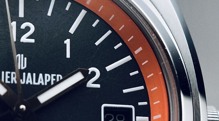 What makes this model really interesting to me is the fact that the brand didn’t content itself with finding a cool and rare material to make dials out of and calling it a day. Many brands function this way which is something I don’t understand nor respect. It’s a damn watch and why not make it functional? Exactly, I knew you would understand where I’m coming from. And Atelier Jalaper didn’t simply—once again—add hands and hour markers to make it a watch, instead it drew inspiration from the Lamborghini Miura’s interior design to layout the dial. For example, the hour markers reference those found on the Miura’s speedometer, so is the handset. And the small detail which fascinates me, and which perhaps you haven’t yet caught, is the design of the minute markers which, actually, aren’t minute markers. Instead, they represent interval speeds as found on a speedometer.