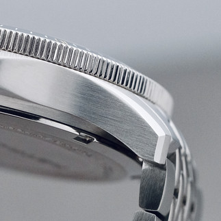 And lastly, the case. On top of it we find a narrow bezel whose size reminds me of vintage skin divers, whilst the polished ceramic bezel insert is definitely a trait of modern watchmaking. All minute markings are incised and those punctuating the 10-minute intervals are lumed and one can see up close the color difference between the lumed and non lumed elements. Bravo to Retrovivo for endowing the bezel with a fully graduated count-up scale by the way, so that it makes the RV02 a useful piece of subaquatic gear in addition to being a thoughtfully designed dive watch. (My opinion only.) The bezel ensemble then plunges down towards the narrow mid-case which shows a predominance of brushed surfaces save for polished chamfers, then stubby crown-guards on the right side and shorts lugs which bend downward towards the wrist for maximum stability. The crown is small as we know which limits its assaults on the skin and is rightly sized given the easy going nature of the caliber inside. In short: better tech for more on-wrist comfort.
